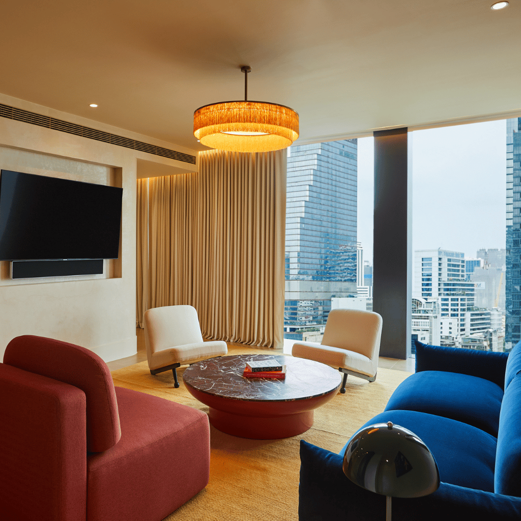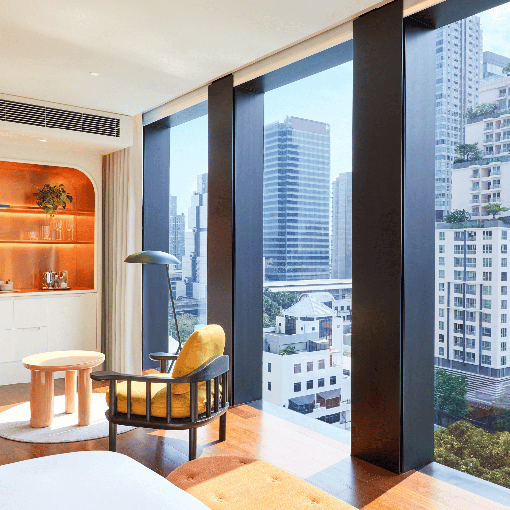 Everything the regular suite offers, plus your own private outdoor space. Perfect for morning coffee or evening drinks with Bangkok as your backdrop.